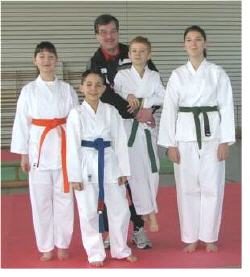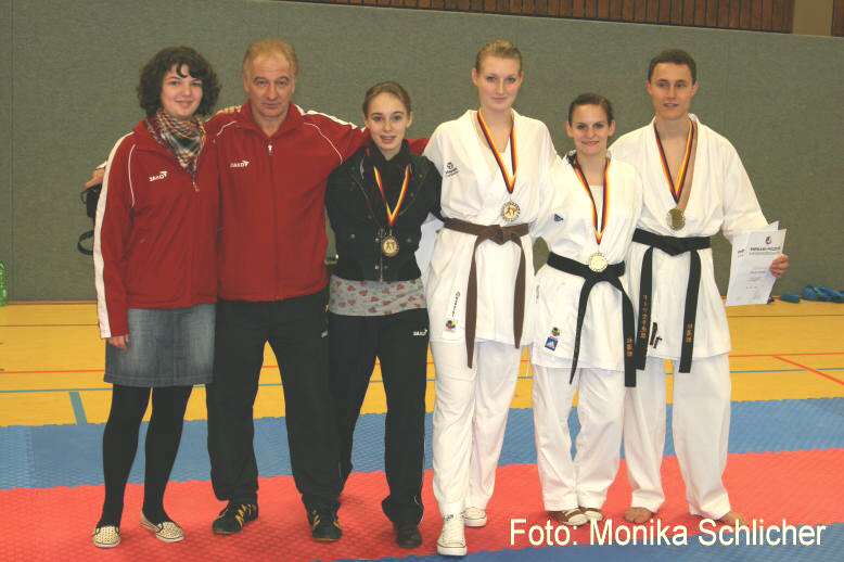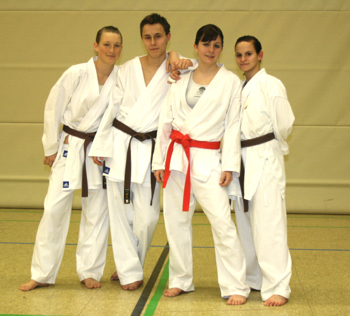 Januar 2009: Das Kumite Kader U 18 mit Katharina Scharle, Yasmin Albus, Christina Schmeer, Alexandra Dohm und Florian Schmeer. Trainer: Manfred Schlicher. |