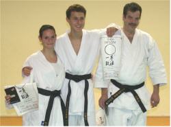Dezember: Die drei neuen Danträger des Heiligenwalder Karateclubs: Christina Hoffmann, Oliver Contier und Hans Josef Mathieu |